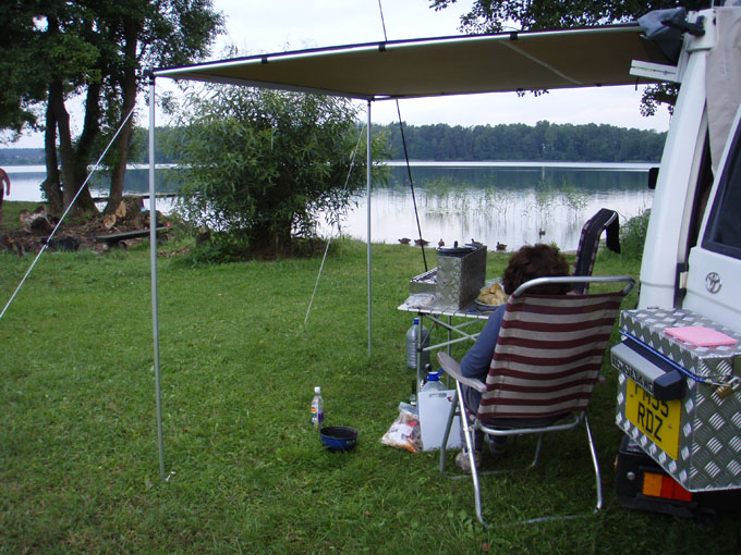 We had a fairly disturbed night at our picnic spot, as just as we got into bed a load of local youngsters arrived for a Saturday night of music and socialising (and who can blame them!). In a way it was quite funny as we were smugly saying only moments ago how lovely and quiet it was by the lake. It all went quiet at about 12.30am and so we got in a few hours sleep before the local ‘recycle team’ came from one of the small villages nearby to sort through all the bins looking for aluminium tins and bottles. They started at about 4.30am. Again you have to laugh…. On the plus side it was free, had a portaloo and lots of bins!