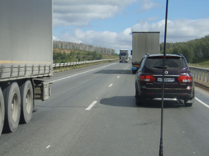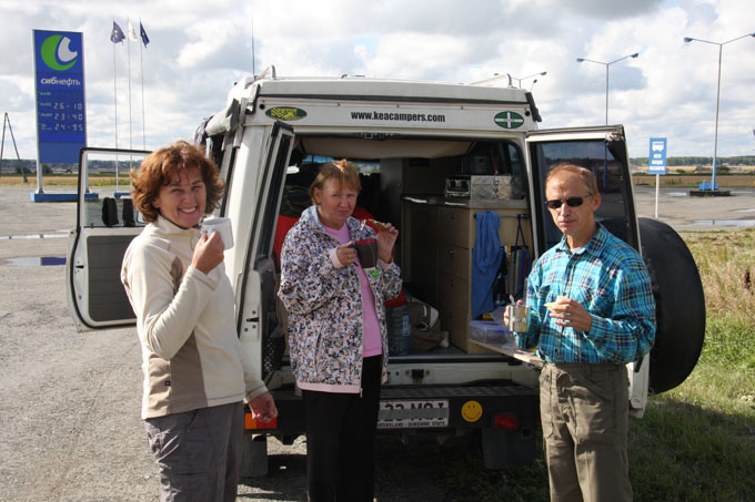 We met Marat and Valya at 9.00am on the Juntion of the E22 as they had been staying in a motel, and carried on towards Novosibirsk. The road was excellent all the way to Ob (town just outside the city) where we were to part company with Marat and Valya. They were continuing their journey to Lake Baikal, whch is still around 2500km from Novosibirsk. They are only going to stay for about 2 days before they turn around and go back again to their home in the north, 2000km north of Moskow!! Lucky Marat likes driving.