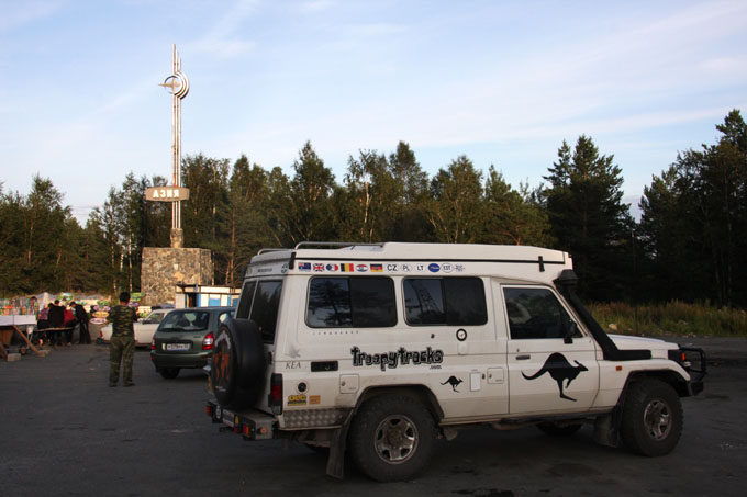 The secure parking that we stayed in last night was ok but the ground and Troopy is plastered with road dirt as the last two days have been very wet, and it is hard to avoid transferring that all inside. It was still a cheap night stop at 50 rub. It was not just a hotel parking, but also served some offices and other businesses. That meant that in the morning we met a few passers by. One was a coin collector, and so we gave him some of the various coins that we had not managed to spend in the previous countries. He kept trying to give us roubles in return ….. we said no, but was very reluctant to take the coins without paying us …. in the end Marjool just put the coins back in his pocket.