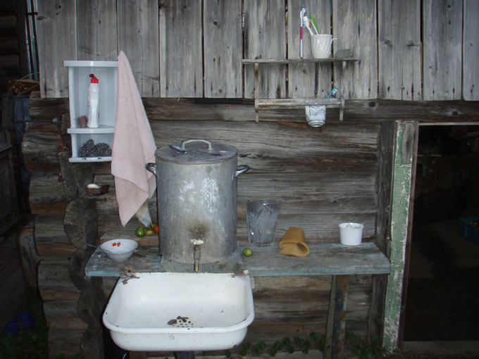 The man in the dressing gown (he was just about to go in the banya) was a mechanic who broke up damaged cars and sold the spares or made up good cars from parts. It was interesting to look through his tools and equipment …. I miss mine! One of the villagers had made up an interesting 4×4 tractor out of car bits.