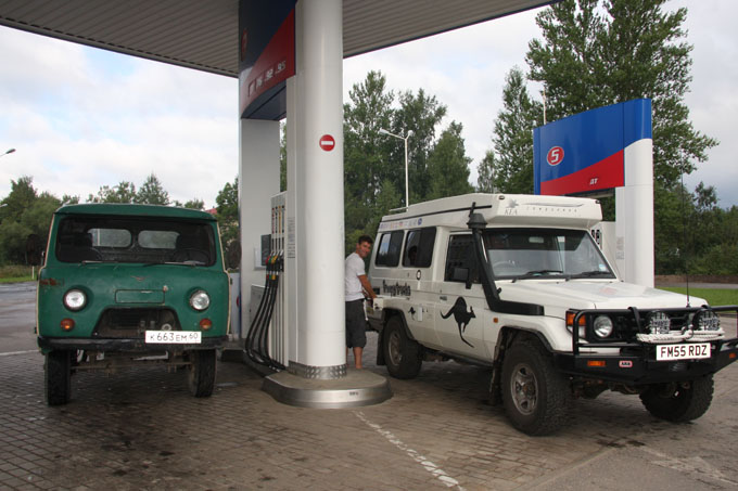 We were due to meet Olga who had been introduced to us by Liuba our Russian teacher at the petrol station just outside the border. It was also the place where we were to buy our green card (third party insurance) for driving in Russia. It was the right place, but the girl who was at the desk spoke no English and however much I tried to point at the documents and explain, she just kept shaking her head …. I was stuck! If you want to complete this step yourself without help you need to have a letter written in Russian explaining that you want a green card, with all the details of your vehicle, name, address, length of stay and anything else you can think of! We were lucky, just at that moment Olga arrived and we managed the whole process in about ten minutes. Total cost of the green card was about 2000 Roubles (£44) for the month, but is more expensive (maybe twice) if the car is over 100 hp. My V5 does not quote a figure.