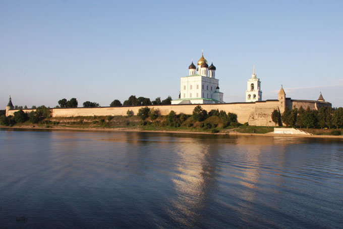 After breakfast we went out sightseeing with Olga, and she had also agreed to take us to the local immigration office to complete the visa registration process. You must do this within 3 days of arriving in Russia. First stop was the Pskov Kremlin which is inside one of the old city walls. The city is very old and goes back to 903! It is older than Moscow which dates back to 945.
