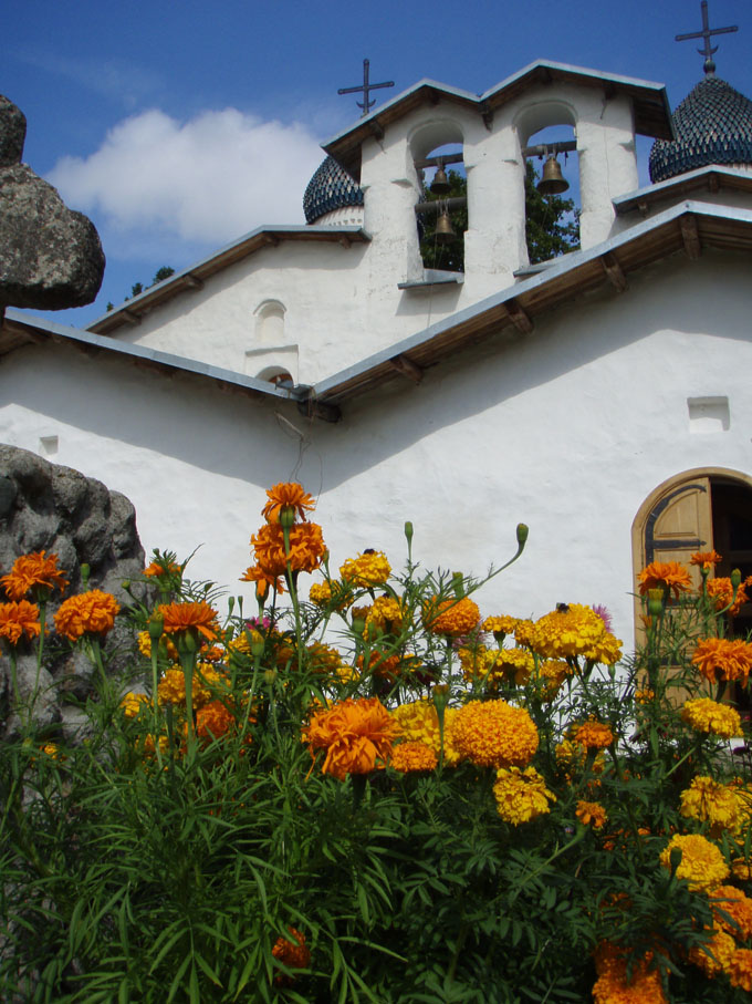 We also visited a lovely, simple church, build in a local Pskov style. It has two towers (onions) and has an unusaual design around the tower called the Pskov necklace.