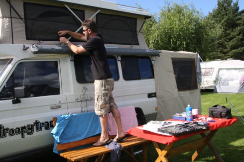 We were hoping to walk around and get some nice photos of the campsite and the walking tracks around it, but this morning it was pouring with rain and we had to pack up without really getting out of the car. Just moved things around … like a Rubiks cube until everything was in the right place and we could drive off. It was a shame as the location was fantastic. This is the river that runs along the edge of the campsite.