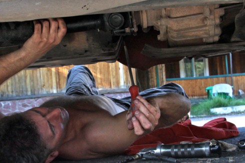 In the afternoon Marjool sorted out the inside of the camper, re-organised food and packed away the now clean clothes. I tried to grease the propshaft again but could not get at one of the grease nipples. Only way to reach was to remove the flange of the propshaft (I know …. yawn!).