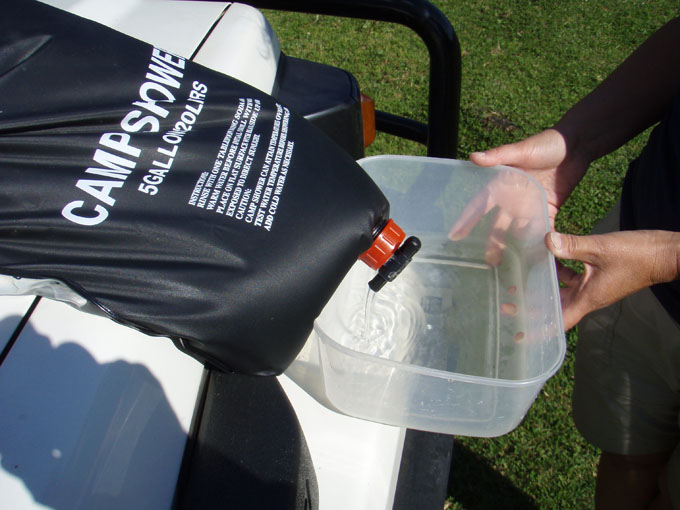 We also used the solar shower (thanks Maybins!) to warm water for a rinse off. Works well!