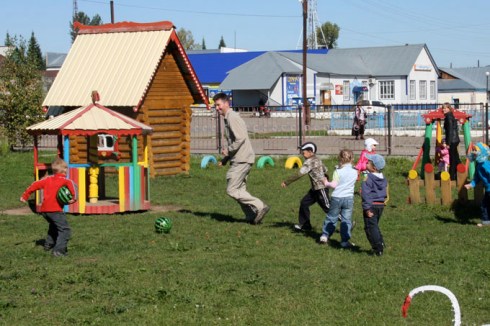 After breakfast we went for a walk around the village with Tanya and Olga. It is not as small as we first thought and has a good sized school that serves some of the neighbouring villages, a new hospital (nearly finished) and new kindergarden. The play equipment was amazing and the children so well behaved and dressed so smartly. We were invited in to take some photos and for Graham to have a game of football.