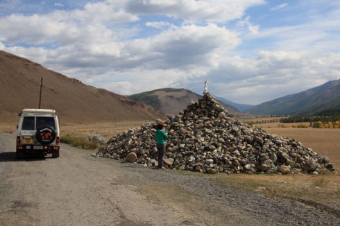 It was surprisingly warm last night, hardly needed the big new duvet! Clouds had formed during the night keeping it relatively warm. Caught up with a few e-mails this morning before heading off towards Kosh – Agash which is only about 90 km down the Chuysky Trakt. After that it is just 73 km to the border. On the way we decided to fill up with water. The bottles and tanks total about 75 litres plus we have another 5 litres of bought bottled water. It turned out that it was a sacred spring.