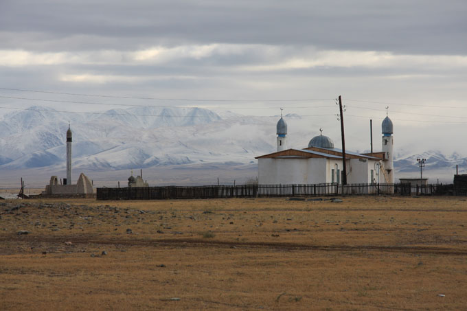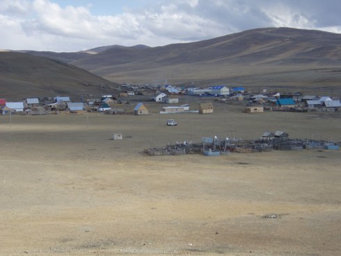 After looking around Kosh Agach for a place to stay and not finding anywhere that took our fancy, we drove towards the next village. On the way we went through a road block, which is basically a military passport check point. To proceed further you need a valid visa for Mongolia. The next village was very small and due to the cold there were few people around to ask about camping. We opted for a high profile spot in the centre of the square of grassland around which the village was built. It was starting to get really windy so we pointed the camper into the wind to reduce the chance of damage to the pop top. In the morning the hills around us were covered in a small layer of snow.