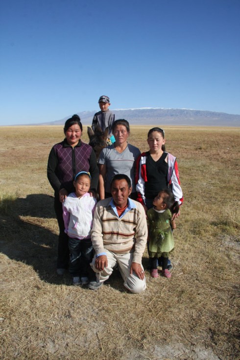 Eager as we were to tuck in to the stew (by now all the inside bits of the goat had been put into a pot with some water and potatoes) we thought it would be nice to take some family photos. They were enthusiastic and all got changed and posed in front of the mountain.