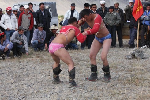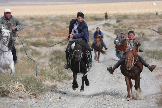The road was good and fast in some places, over rocks and boulders in other and snowy peaks surrounded us as we headed south to join the main road to Khovd.