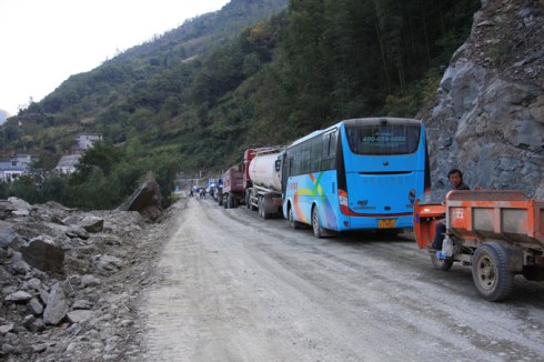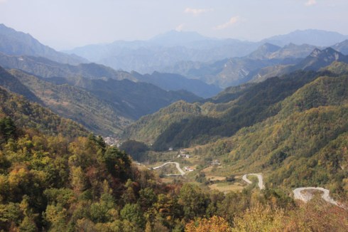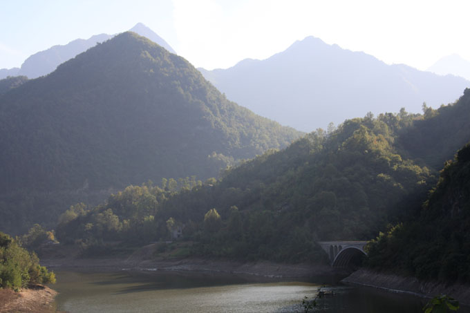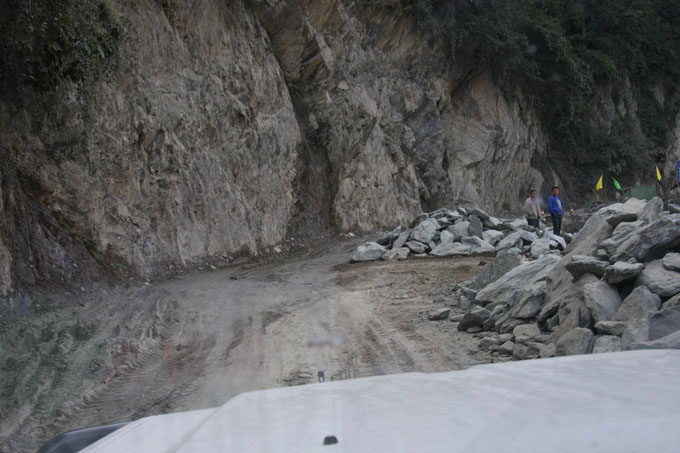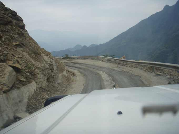 The mist gradually turned to heavy rain and we made a stop for lunch outside a firework factory. The road was covered in mud and was very slippery. Two km up the road we saw a lorry hanging on the crash railings with only a few bits of grass and shrubs between it and a straight 800m drop to the valley below. They were very lucky indeed!