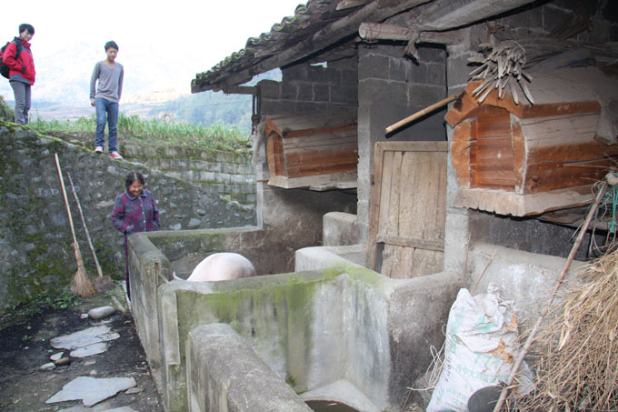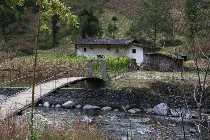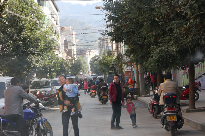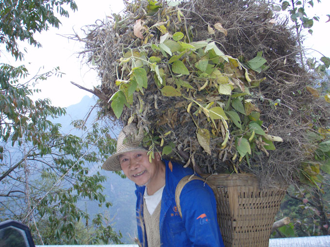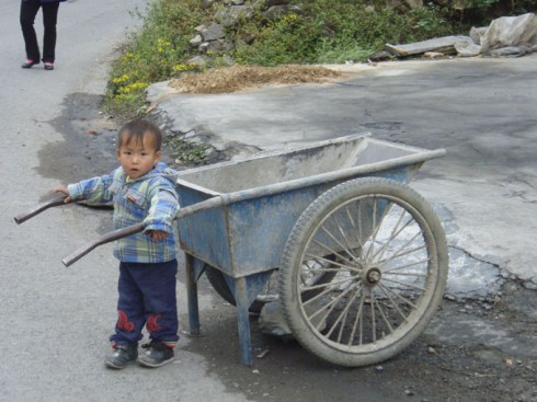 We woke up to a misty morning and set off through a small village on an increasingly steep and winding road. One young local was being trained on the wheelbarrow.