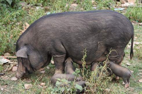 Lots of the houses have their own pig, or in this case a whole family. The piglets are sweet and are running around everywhere. Lots of children, piglets and chicks here. Must be something in that spring water!