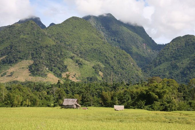The traditional villages are very pretty and are dotted along the road every few kms. They have roofs made with natural materials and remind us of our days backpacking in Thailand 20 plus years ago.