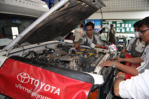 Outside of Tesco we met a Scot called Mick who had lived in Thailand for years. He saw that we were driving a Toyota and asked if we had met Edith. She owns the Toyota dealership and is a local magistrate. We needed insurance and she sounded so nice that we decided to go along and check out the price of an oil change. We were quoted the equivelent of 5o pounds to change the oil and filter and adjust the fan belt. As the oil cost 30 pounds in Russia and a filter 15 pounds in the Uk, it seemed an excellent deal! They checked various other fluids and gave it a really good clean. They were very efficient and professional and were incredibly polite and friendly. I would strongly recommend a pit stop there if you are driving a Toyota.