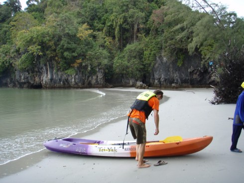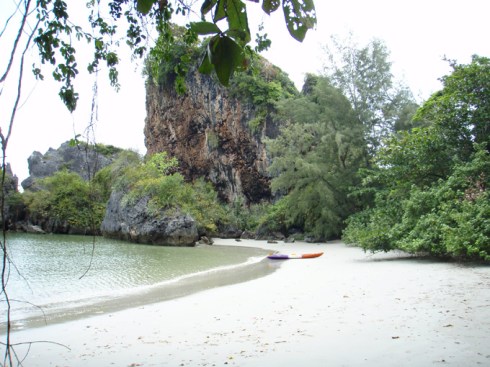 In the morning we headed off towards Trang. On the way we stopped at Chai Mai Beach National Park for lunch and decided that it was too nice to leave straight away. We hired a canoe and explored the rocky coast.