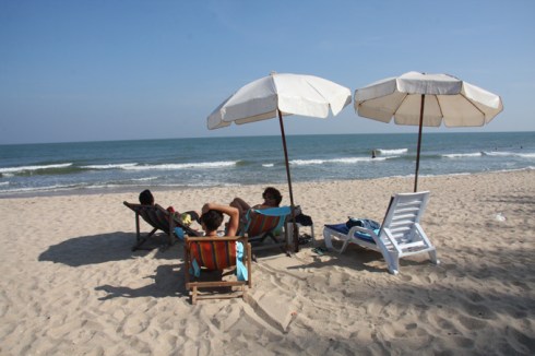 Initially we had parked backing on to the beach but the monkeys drove us away. As soon as the doors were opened they prepared to storm the car. We retreated to the space next to the National Park office as the monkeys did not venture that far.