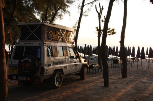 In the evening Andre, a German overlander came and said hello. It was only the third one we had met on our way. We decided to head off into town for diner and a beer to chat about our respective trips. Tomorrow we will walk up the beach to check out his truck.