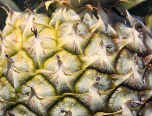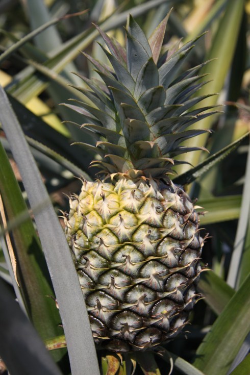 On the way back we drove through tiny rutted sandy tracks to the main road through pineapple fields. The young pineapple flowers are really pretty, before the pineapple forms underneath.