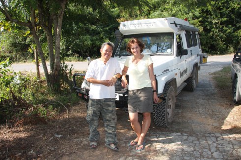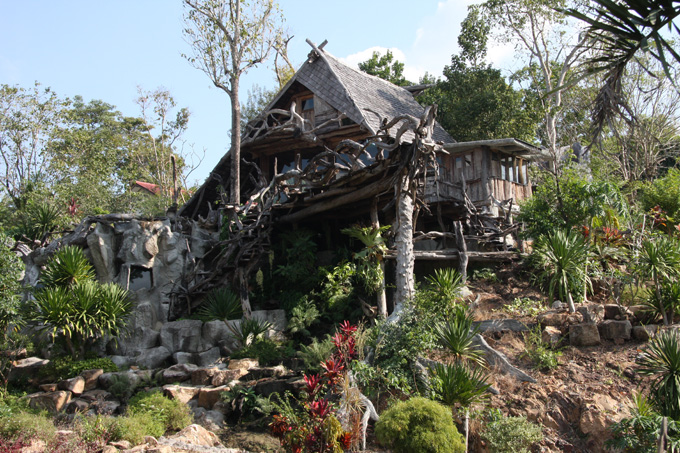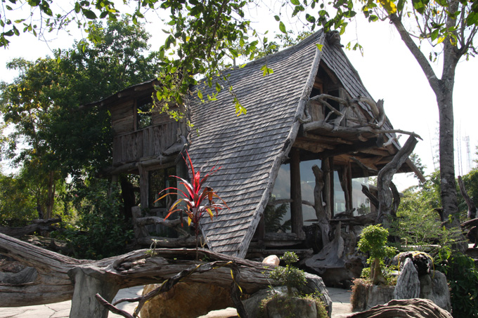 A little bit further along the road we stopped to take a picture of an unusual house. It had been built using wood from old hardwood trees. The branches were not machined, except for a little bit of rounding using a grinder. While we were looking the owner, who was an interior designer from Bangkok came over and invited us in.