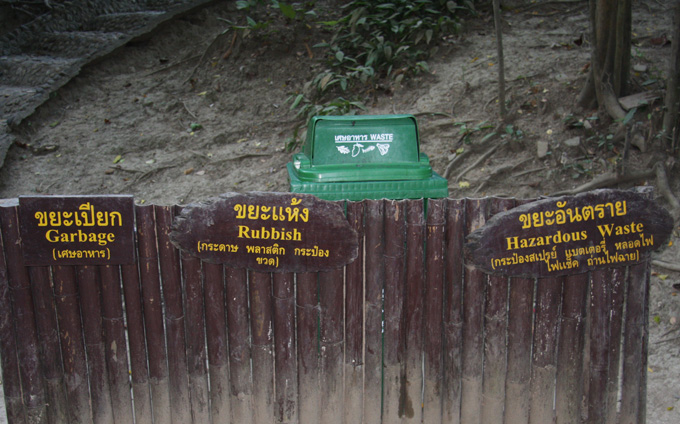Walking back up to the falls, we could not help smiling at the signs on the litter bins. Great that they have all the categories listed, but in any case it goes into one bin! Why anyone would bring hazardous waste on a picnic is a mystery to me though.