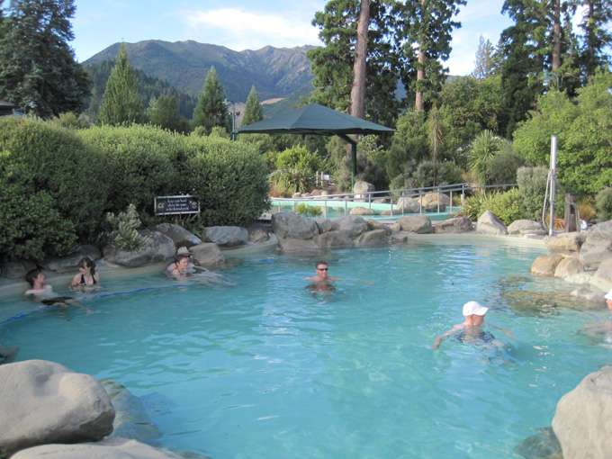 We continued on from Murchison via Springs Junction to Hamner Springs. This is a town that has an extended tourist season due to the skiing in the winter and the thermal baths and spas throughout the year. It is a lovely little town with a nice feel. The main street has a wide grassy area in the centre maybe 50 m wide with rows of old oak trees. Lots of picnic tables and shady parking. The pools themselves are great, with lots of pools of different temperatures and some really smelling strongly of sulphur. There are also separate pools for the kids with water slides. A great family destination, with lovely mountain scenery all around.