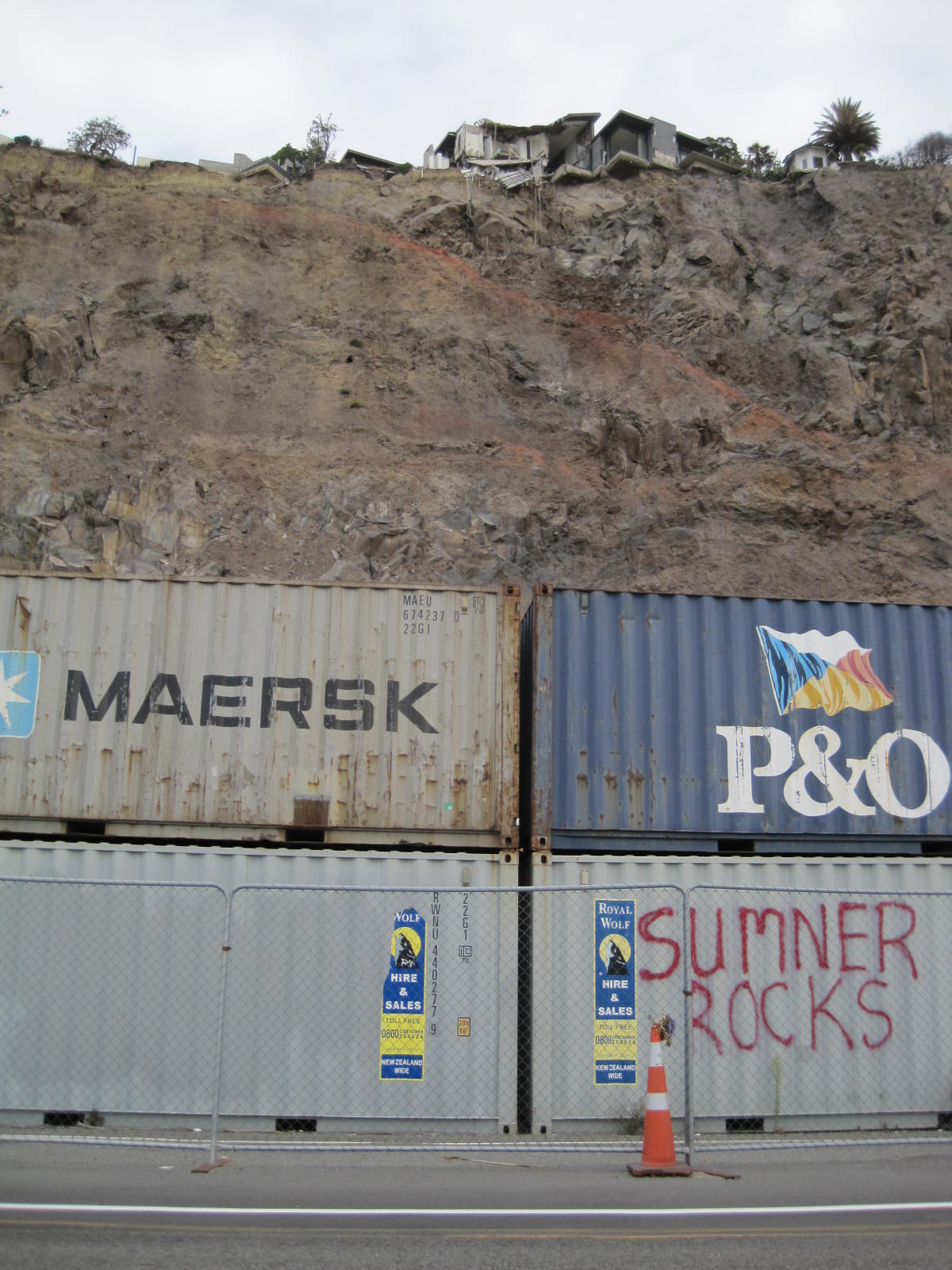 Again containers have been used to provide protection to the road and traffic. There are hundreds of them.